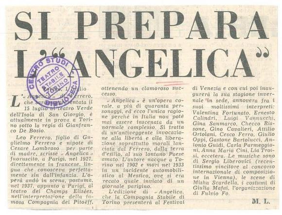 Angelica (1958/59) - Rassegna stampaRassegna stampaDocumentiDramma, giugno 1959Dramma, agosto-settembre 1959Senza indicazione di testata, 1 luglio 1959relazioneAngelica (1958/59)Fondi collegatiappartiene aArchivio Storico TST