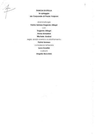 Pancia di stella (2002) - Copioni con annotazioniMateriale preparatorioEstratti di copioni di "Pancia di stella", con annotazioni di Eugenio AllegriPer la consultazione dei documenti completi contattare il Centro Studi del Teatro Stabile di Torino all'indirizzo biblioteca@teatrostabiletorino.itrelazionePancia di stellaFondi collegatiappartiene aArchivio Eugenio Allegri