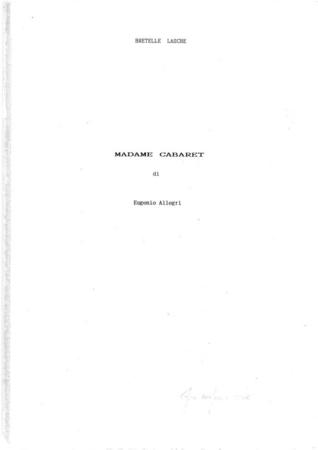 Madame Cabaret (1993) - Copioni con annotazioniMateriale preparatorioEstratti di copioni di "Madame Cabaret", con annotazioni di Eugenio AllegriPer la consultazione dei documenti completi contattare il Centro Studi del Teatro Stabile di Torino all'indirizzo biblioteca@teatrostabiletorino.itrelazioneMadame CabaretFondi collegatiappartiene aArchivio Eugenio Allegri