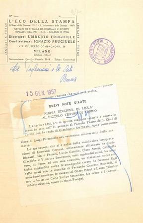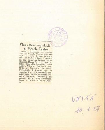 Liolà (1956/57) - Rassegna stampa