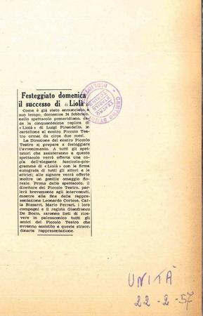 - L'Unità, 22 febbraio 1957